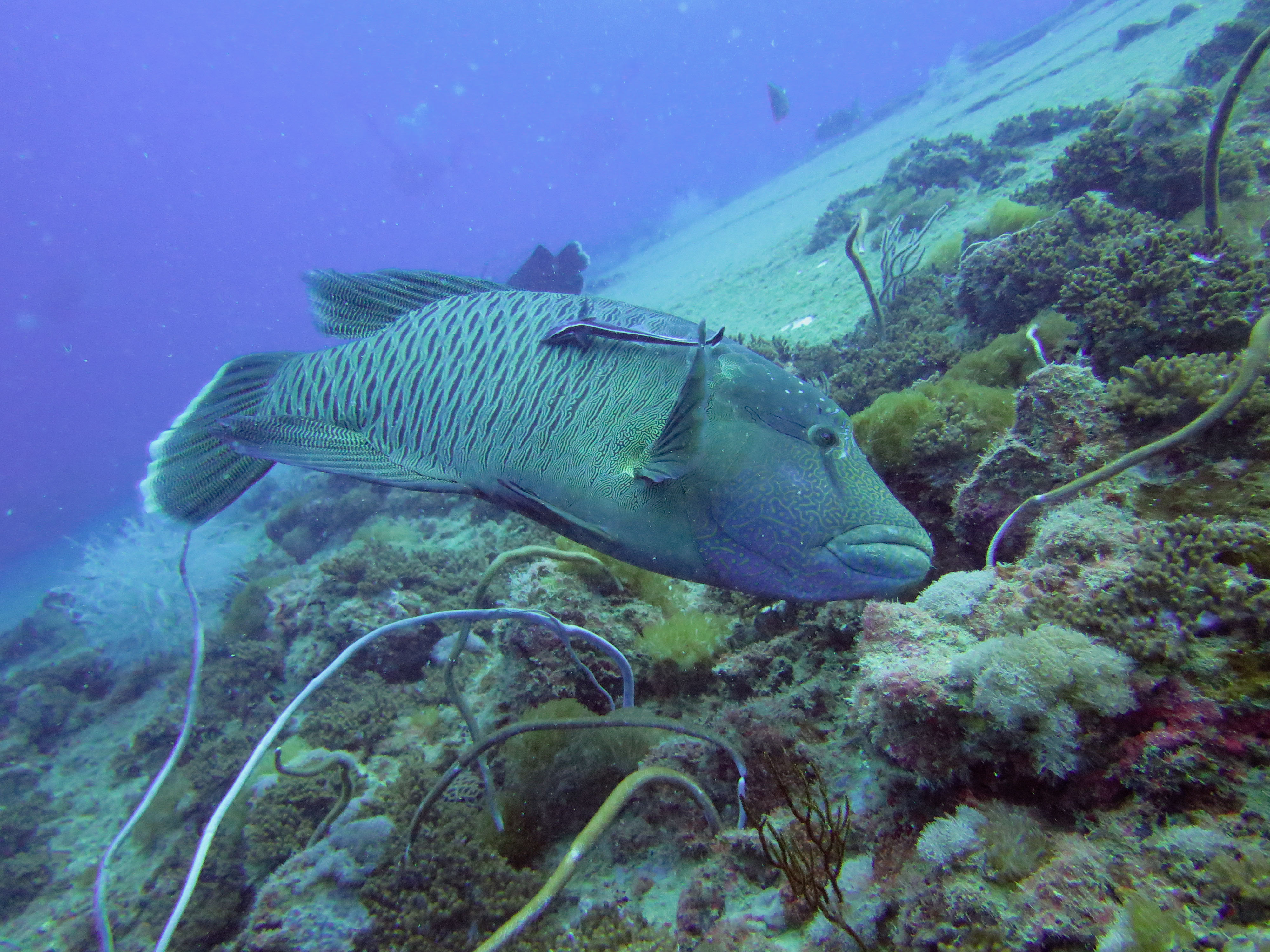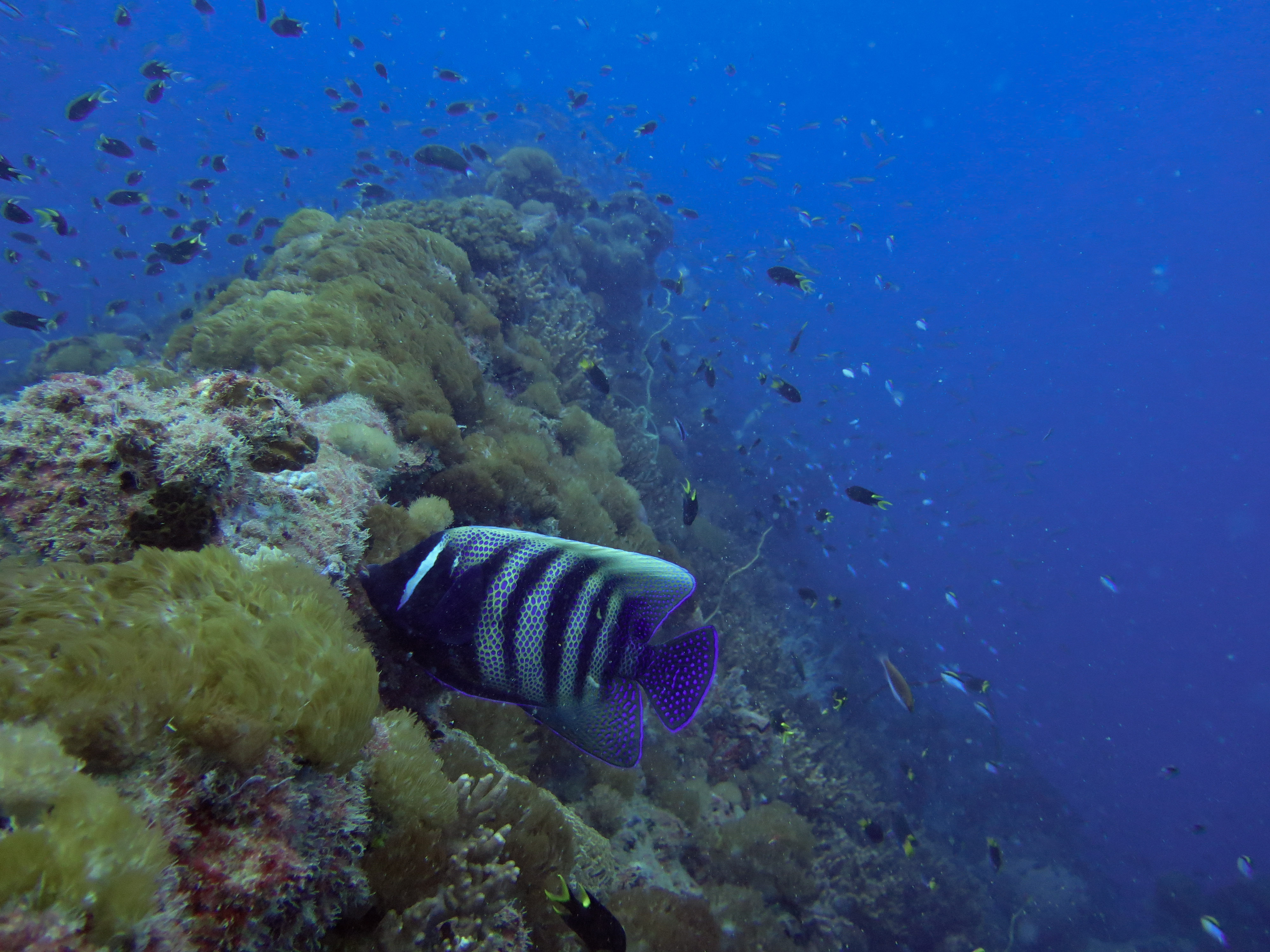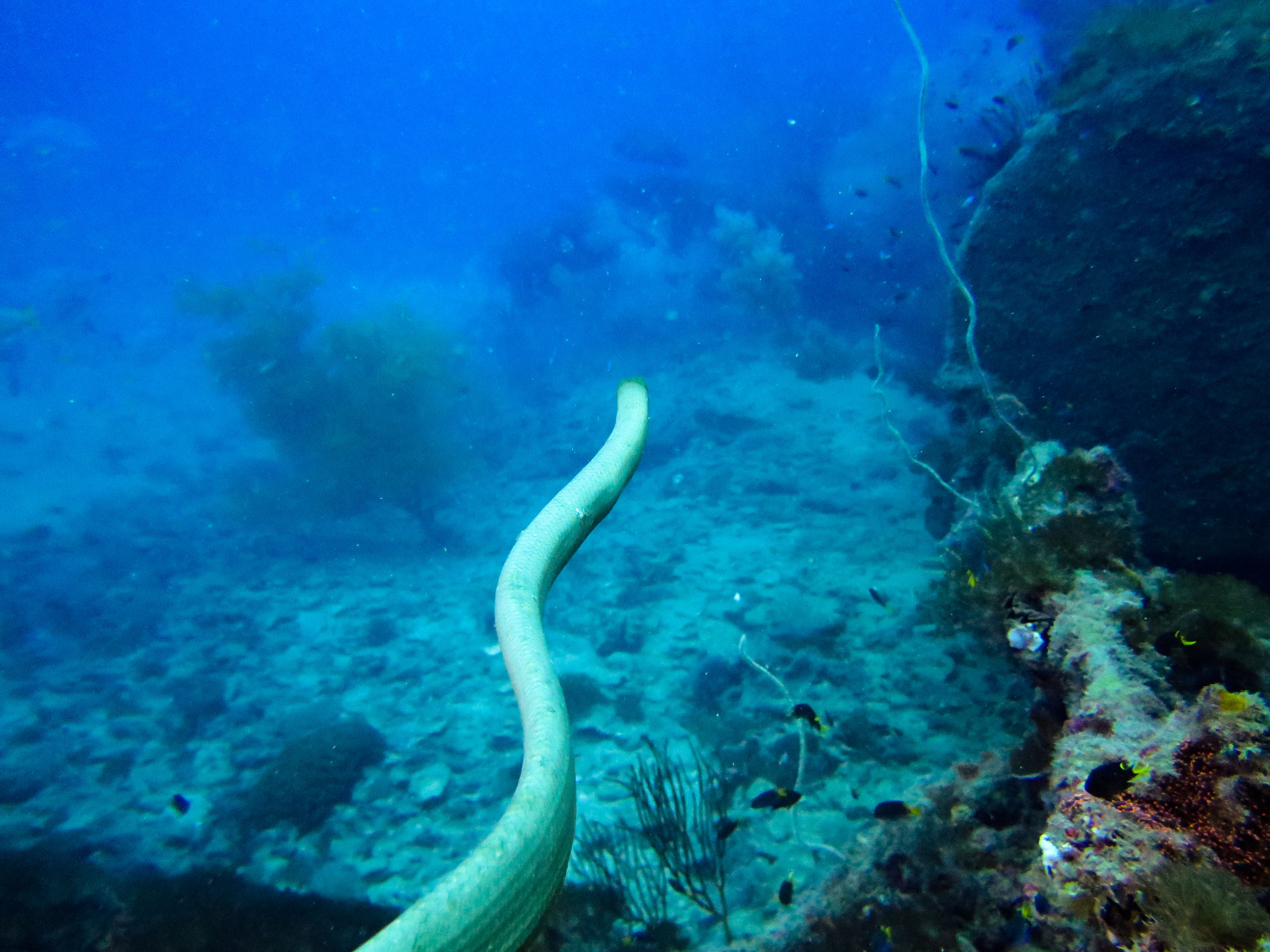 La plongée en elle-même était excellente : raie léopard, bull raie et cowrail raie, cobias, mérous géant du queensland, serpent de mer olive, tortue géante et bien d’autres étaient au rendez-vous! J’ai cependant trouvé que la population de juvénile à l’intérieur de l’épave était bien moins dense que la première fois. Cela est probablement dû à la saison…