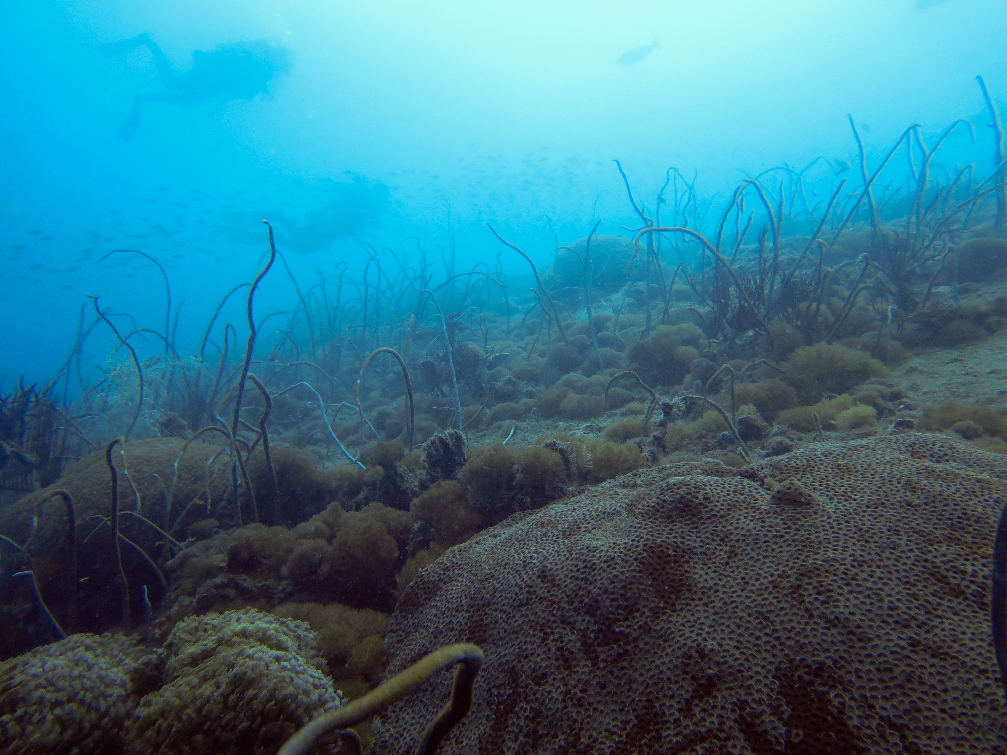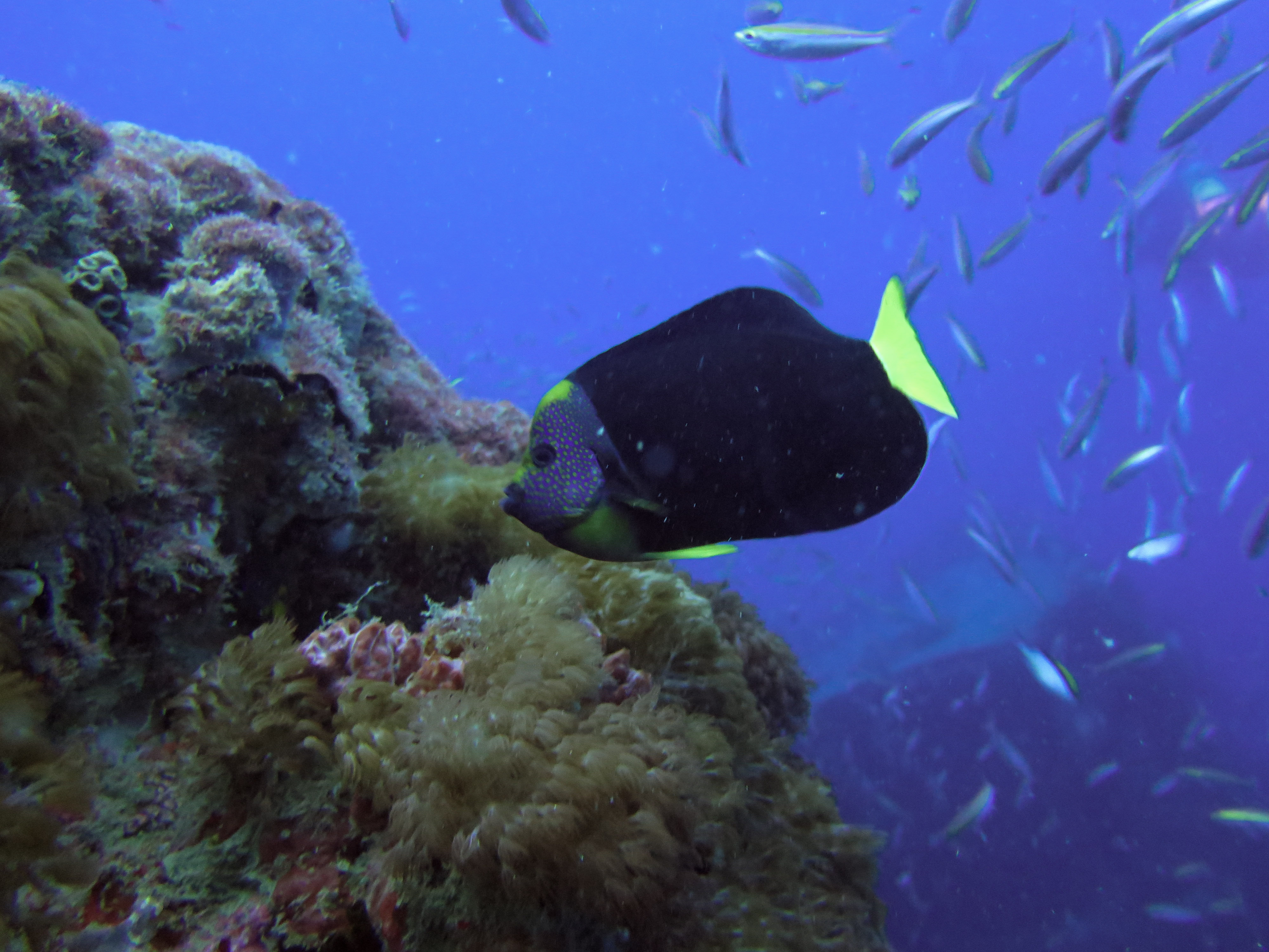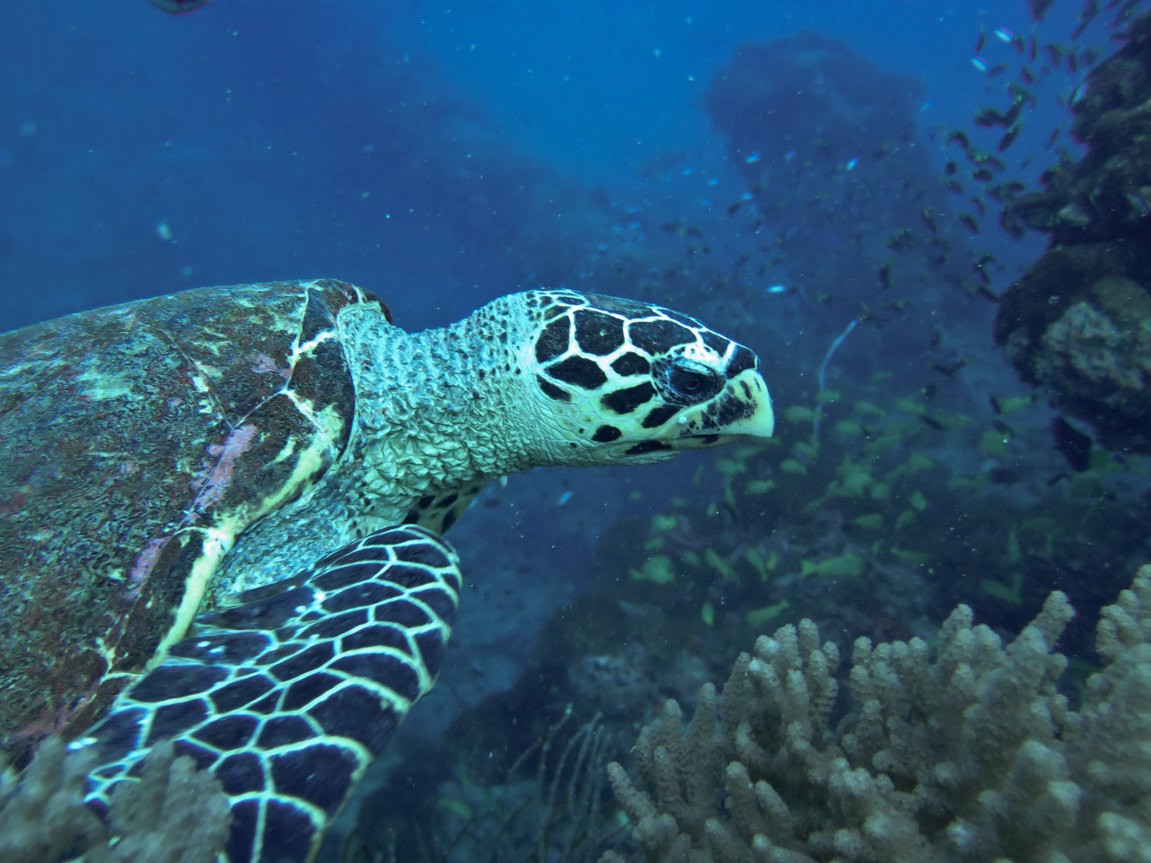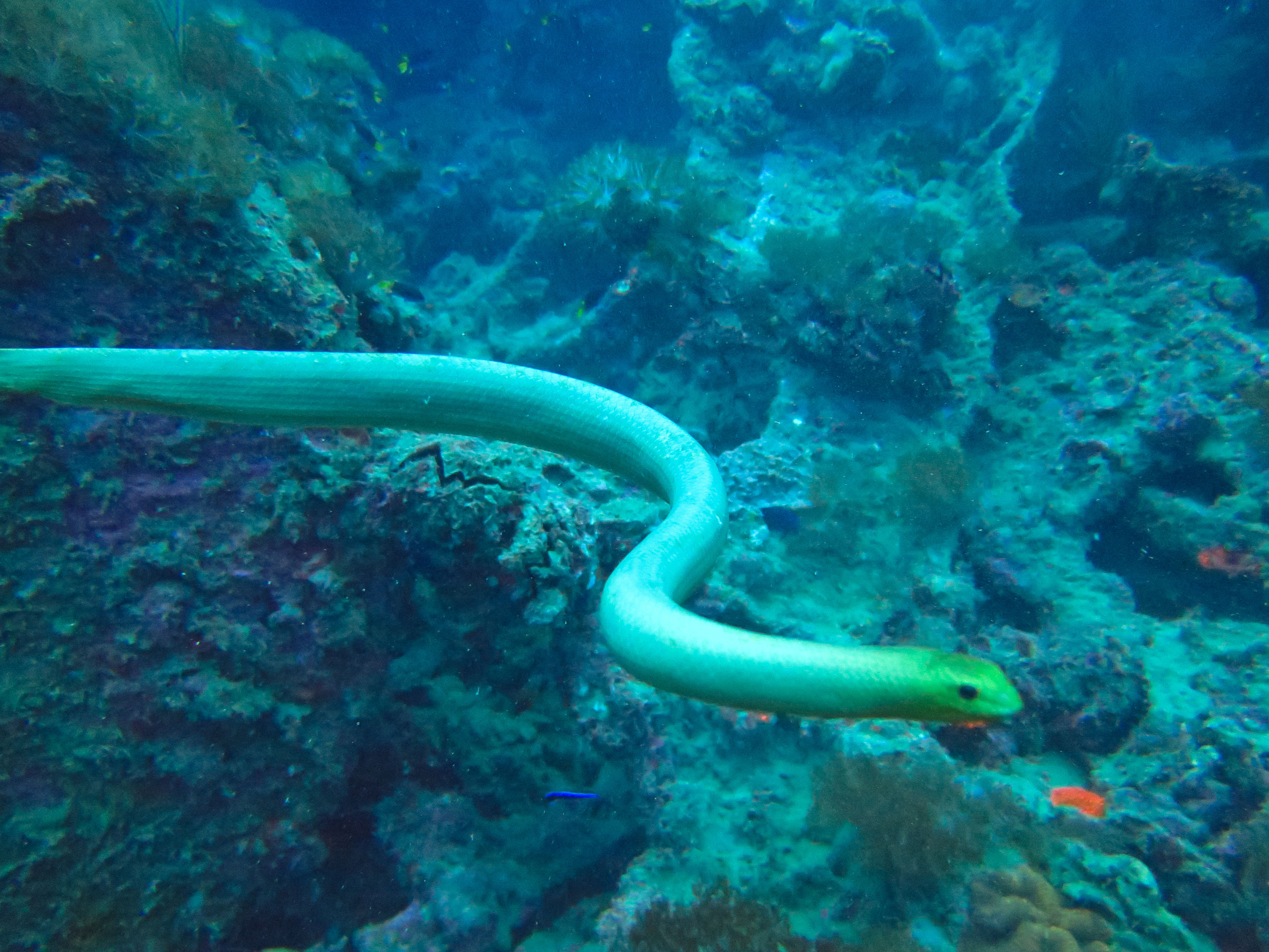 La plongée en elle-même était excellente : raie léopard, bull raie et cowrail raie, cobias, mérous géant du queensland, serpent de mer olive, tortue géante et bien d’autres étaient au rendez-vous! J’ai cependant trouvé que la population de juvénile à l’intérieur de l’épave était bien moins dense que la première fois. Cela est probablement dû à la saison…