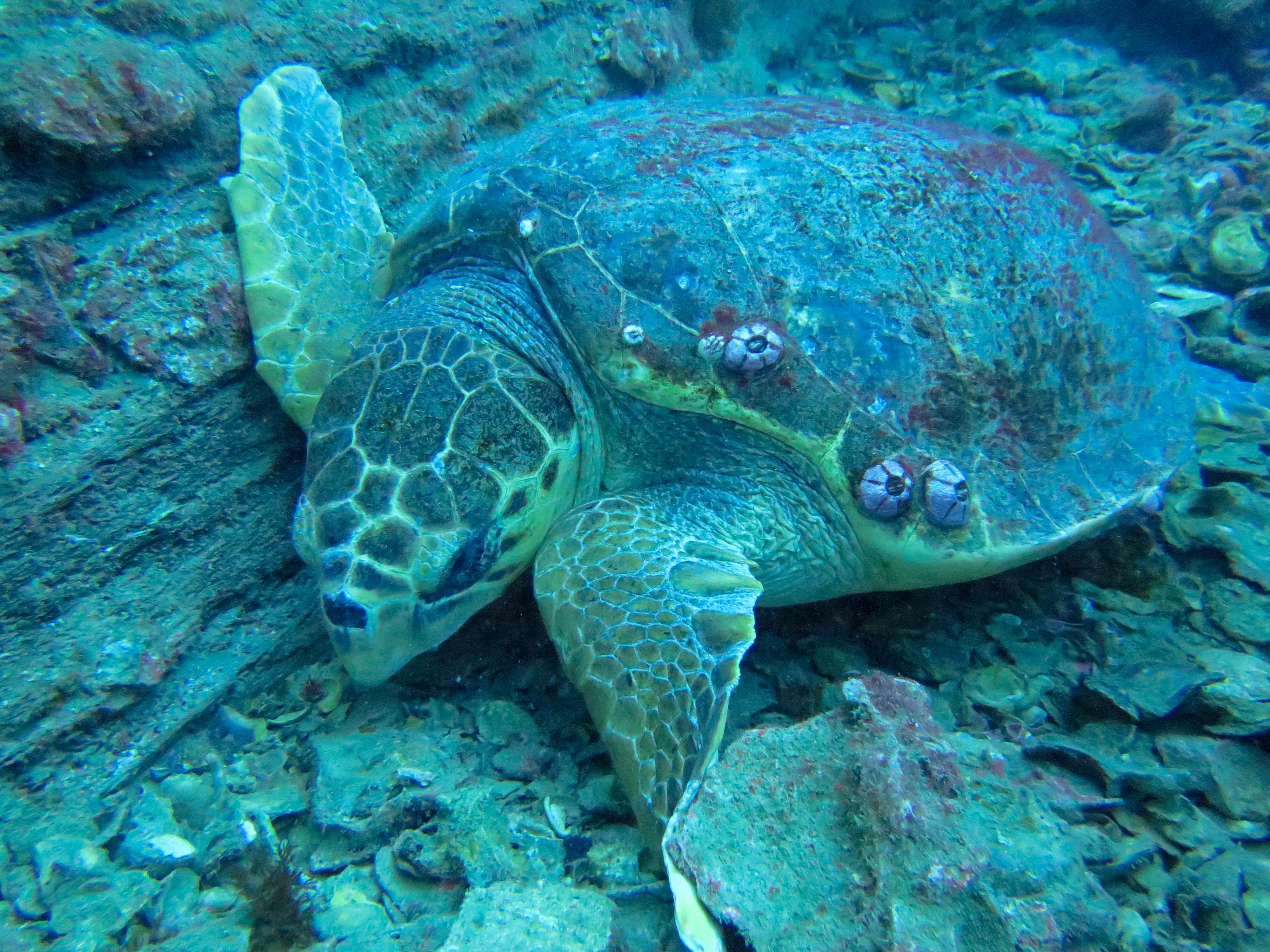 Il n'y a pas de doute, cette tortue est l'un des doyens de l'épave...