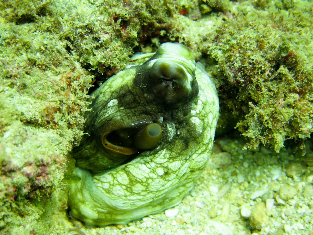Le Navy Pier, en forme de T ressemble à un guetto pisci-communautariste : sous tel parti du pont vous trouverez des barracudas, sous celle-ci les trevalleys, à l’angle on trouvera quantité de murène et de pieuvre, le fond est tapissé de requins, etc…J’enseigne toujours à mes étudiants Advanced de se méfier des poissons pour s’orienter, ici au contraire, ceux sont des point de repère quasiment immuables….